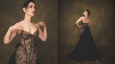 - •Tamannaah wore a stunning black lace 'Lune' Couture 2025 gown by designer Surya Sarkar, priced at Rs. 4.65 lakhs.