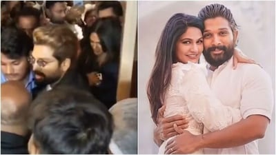 यह क्यों महत्वपूर्ण है?: अल्लू अर्जुन ने अपने नए मल्टीप्लेक्स के लॉन्च के बाद हैदराबाद कैफे में फैंस की भीड़ से पत्नी स्नेहा रेड्डी को बचाया.